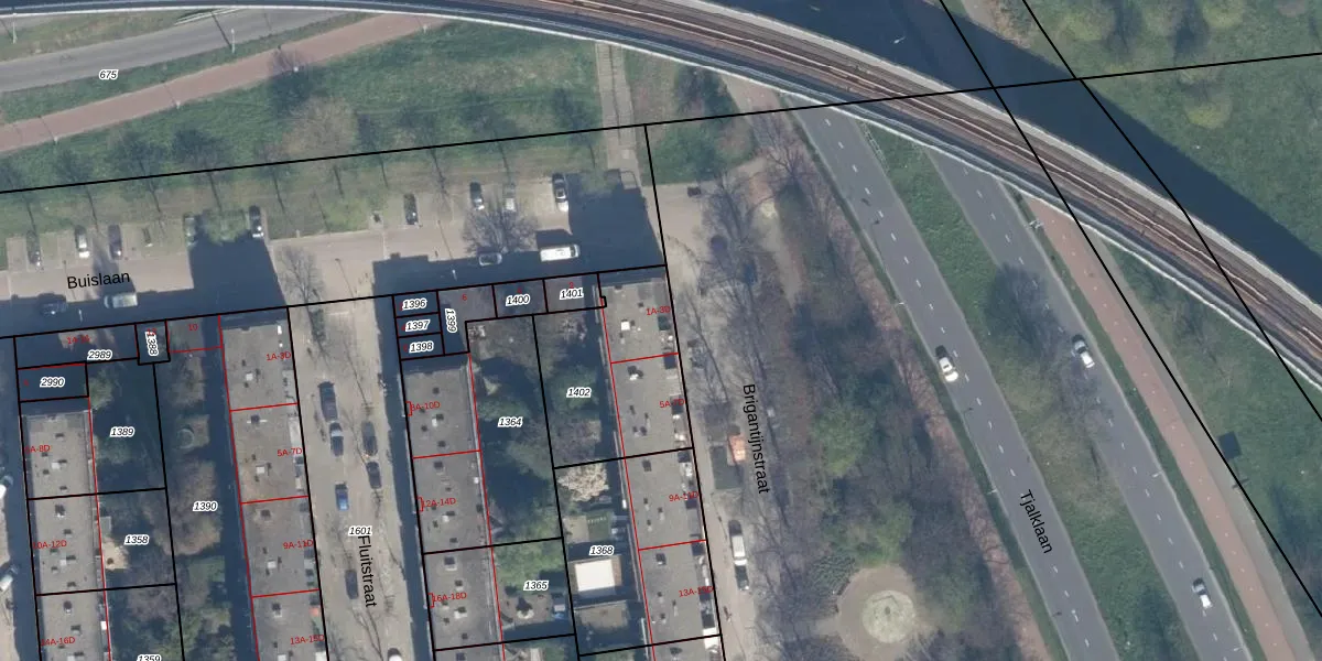 Het perceel waarop het adres ligt is RTD10-AA-1402. De afkorting 'RTD10' staat voor kadastrale gemeente Rotterdam. Het perceel is 536 m² groot. Dat is kleiner dan de gemiddelde perceeloppervlakte in Rotterdam, dat op 1601,7 m² ligt. De grootste perceeloppervlakte in de kadastrale gemeente is 30,3 ha. De kleinste oppervlakte bedraagt 0 m². Er zijn 16 adressen aanwezig op het perceel. De laatste wijziging in het de Basisregistratie Kadaster (BRK) was op 12-06-2008.