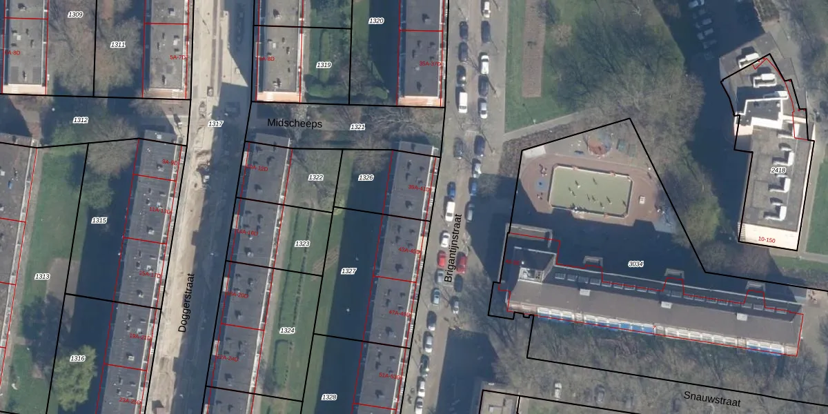 Het perceel waarop Brigantijnstraat 41-C staat heeft een oppervlakte van 358 m². Dit is een groot perceel. De perceeloppervlakte wordt geregistreerd door het Kadaster. Gedetailleerde informatie over de maten van dit perceel kunt u vinden in het rapport Kadastrale kaart met maatvoering van Brigantijnstraat 41-C.