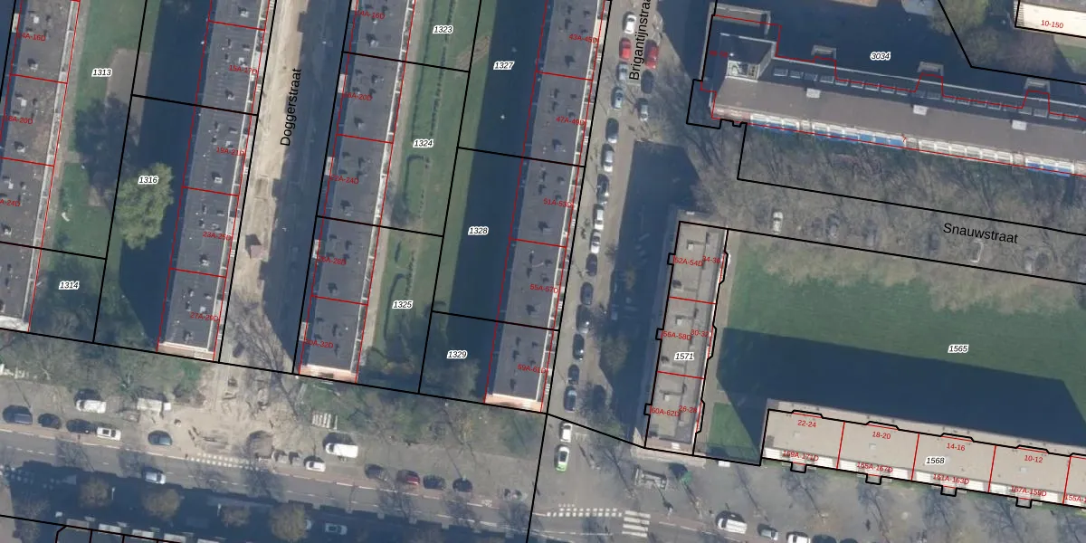 Het perceel waarop Brigantijnstraat 55-C staat heeft een oppervlakte van 730 m². Dit is een groot perceel. De perceeloppervlakte wordt geregistreerd door het Kadaster. Gedetailleerde informatie over de maten van dit perceel kunt u vinden in het rapport Kadastrale kaart met maatvoering van Brigantijnstraat 55-C.