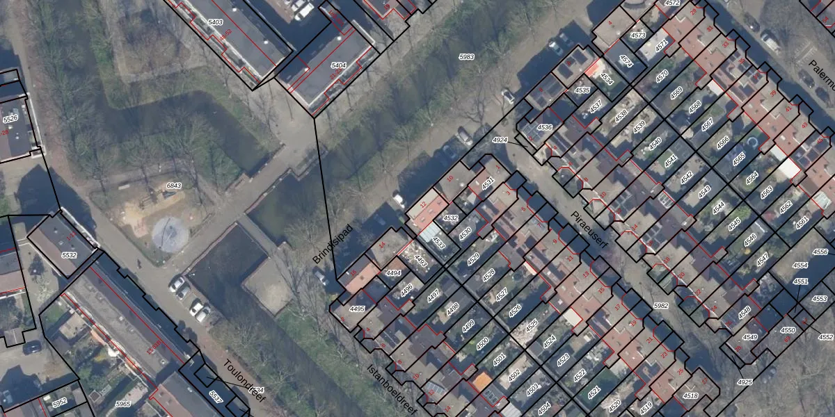 Het perceel waarop Brindisipad 12 staat heeft een oppervlakte van 119 m². Dit is een middelgroot perceel. De perceeloppervlakte wordt geregistreerd door het Kadaster. Gedetailleerde informatie over de maten van dit perceel kunt u vinden in het rapport Kadastrale kaart met maatvoering van Brindisipad 12.