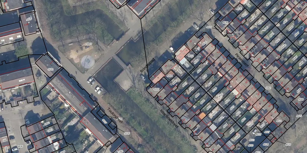 Het perceel waarop Brindisipad 16 staat heeft een oppervlakte van 93 m². Dit is een klein perceel. De perceeloppervlakte wordt geregistreerd door het Kadaster. Gedetailleerde informatie over de maten van dit perceel kunt u vinden in het rapport Kadastrale kaart met maatvoering van Brindisipad 16.