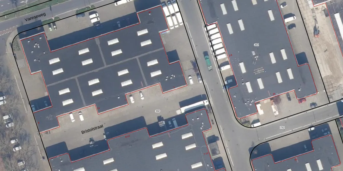 Het perceel waarop Bristolstraat 1 staat heeft een oppervlakte van 2,0 ha. Dit is een zeer groot perceel. De perceeloppervlakte wordt geregistreerd door het Kadaster. Gedetailleerde informatie over de maten van dit perceel kunt u vinden in het rapport Kadastrale kaart met maatvoering van Bristolstraat 1.