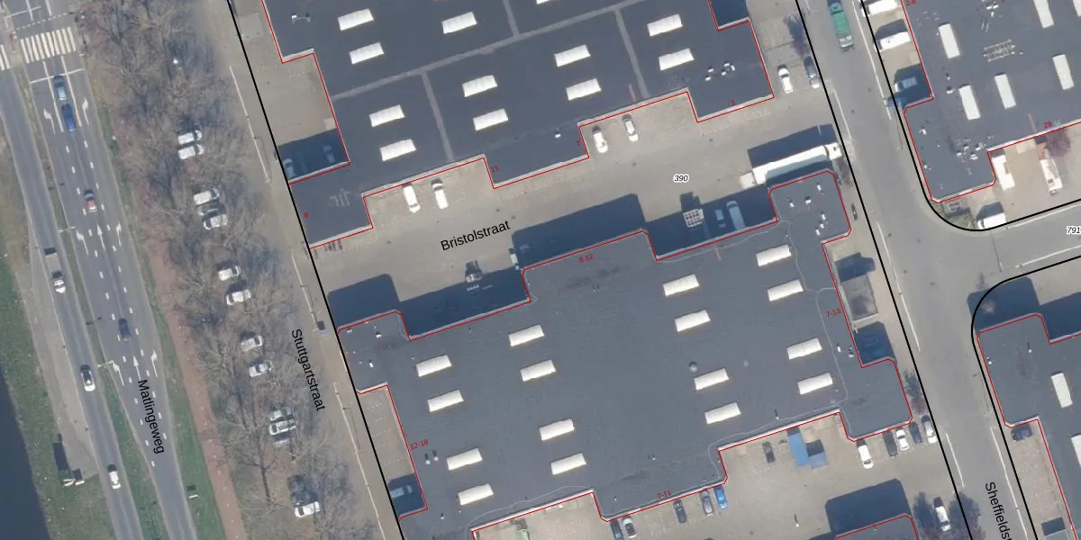 Het perceel waarop Bristolstraat 12 staat heeft een oppervlakte van 2,0 ha. Dit is een zeer groot perceel. De perceeloppervlakte wordt geregistreerd door het Kadaster. Gedetailleerde informatie over de maten van dit perceel kunt u vinden in het rapport Kadastrale kaart met maatvoering van Bristolstraat 12.