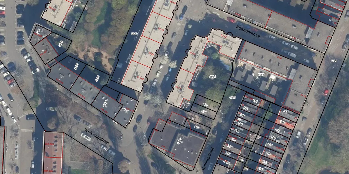 Het perceel waarop het adres ligt is KLG00-G-5834. De afkorting 'KLG00' staat voor kadastrale gemeente Kralingen. Het perceel is kleiner dan gemiddeld in Kralingen. Het perceel is 1175 m² groot, terwijl het gemiddelde ligt op 1359,43 m². Het grootste perceel in de kadastrale gemeente is 1,32 km². Het kleinste perceel heeft een oppervlakte van 0 m². Op het perceel liggen in totaal 17 adressen. De huidige grenzen van het perceel zijn digitaal in de Basisregistratie Kadaster (BRK) geregistreerd op 24-01-2003.