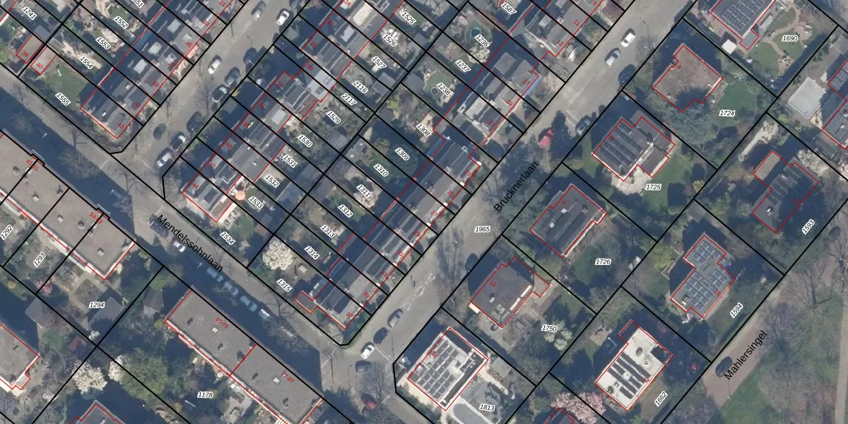 Het perceel waarop Brucknerlaan 27 staat heeft een oppervlakte van 185 m². Dit is een middelgroot perceel. De perceeloppervlakte wordt geregistreerd door het Kadaster. Gedetailleerde informatie over de maten van dit perceel kunt u vinden in het rapport Kadastrale kaart met maatvoering van Brucknerlaan 27.