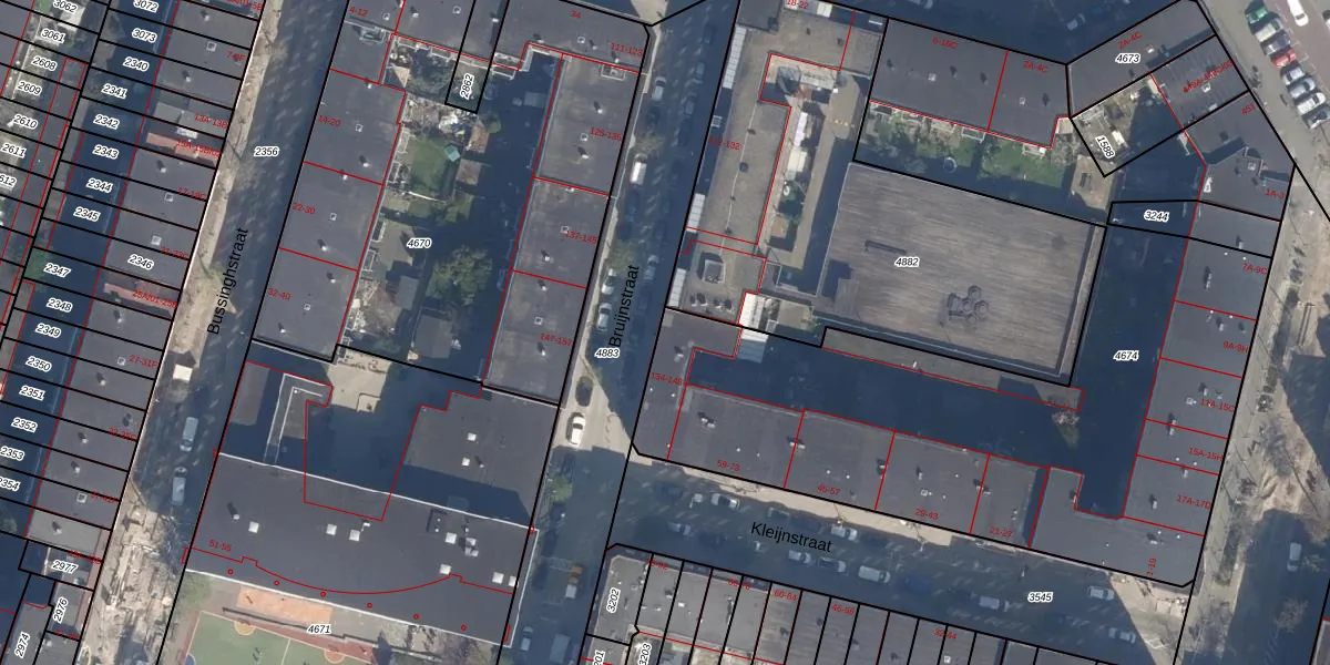 Het perceel waarop Bruijnstraat 146 staat heeft een oppervlakte van 3835 m². Dit is een zeer groot perceel. De perceeloppervlakte wordt geregistreerd door het Kadaster. Gedetailleerde informatie over de maten van dit perceel kunt u vinden in het rapport Kadastrale kaart met maatvoering van Bruijnstraat 146.
