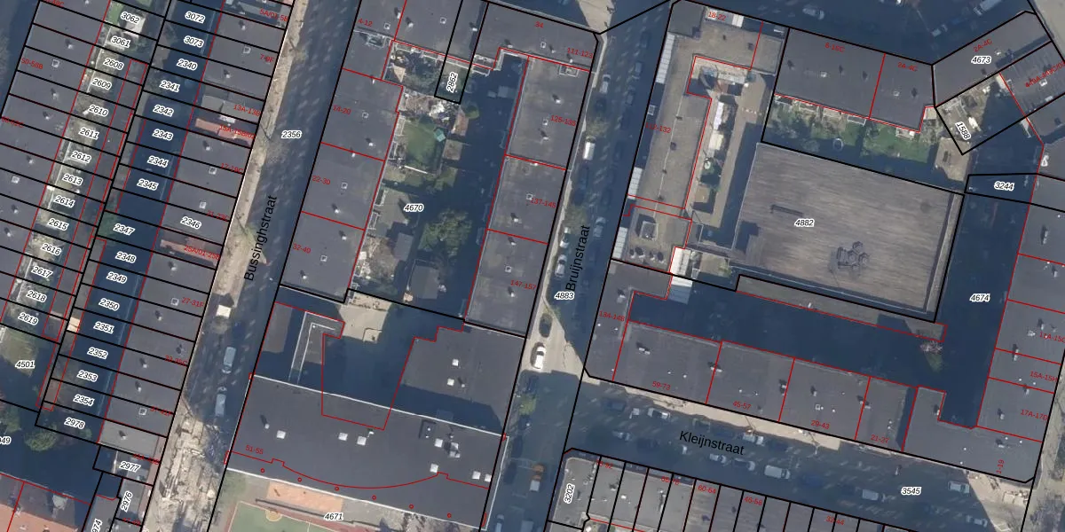 Het perceel waarop Bruijnstraat 147 staat heeft een oppervlakte van 2655 m². Dit is een zeer groot perceel. De perceeloppervlakte wordt geregistreerd door het Kadaster. Gedetailleerde informatie over de maten van dit perceel kunt u vinden in het rapport Kadastrale kaart met maatvoering van Bruijnstraat 147.