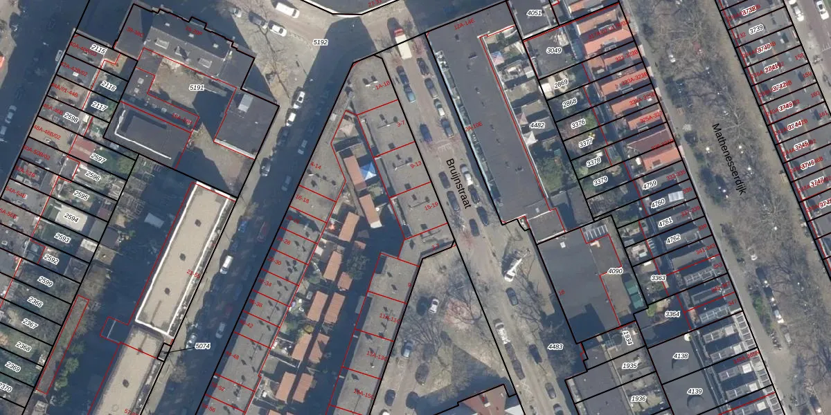 Bruijnstraat 15 is gelegen op kadastraal perceel DHV00H4044. Deze kadastrale aanduiding is uniek en wordt gebruikt door het Kadaster om eigendomsrechten en andere zakelijke rechten vast te leggen. Het perceel maakt onderdeel uit van de kadastrale gemeente Delfshaven.