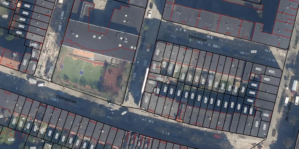 Het perceel waarop het adres ligt is DHV00-H-3200. De afkorting 'DHV00' staat voor kadastrale gemeente Delfshaven. Het perceel is kleiner dan gemiddeld in Delfshaven. Het perceel is 102 m² groot, terwijl het gemiddelde ligt op 628,61 m². Het kleinste perceel in de kadastrale gemeente is 0 m² groot. De grootste perceeloppervlakte is 22,2 ha. Op het perceel zijn 5 adressen aanwezig. In de Basisregistratie Kadaster (BRK) werden de grenzen van het perceel geregistreerd op 08-06-2006.
