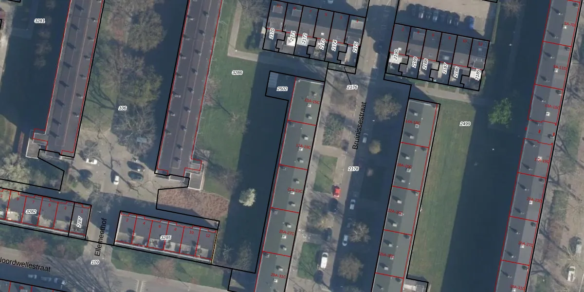 Het perceel waarop Bruinissestraat 17-B staat heeft een oppervlakte van 985 m². Dit is een groot perceel. De perceeloppervlakte wordt geregistreerd door het Kadaster. Gedetailleerde informatie over de maten van dit perceel kunt u vinden in het rapport Kadastrale kaart met maatvoering van Bruinissestraat 17-B.