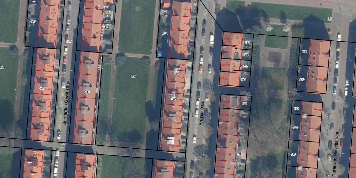 Het perceel waarop Brussestraat 13-A staat heeft een oppervlakte van 836 m². Dit is een groot perceel. De perceeloppervlakte wordt geregistreerd door het Kadaster. Gedetailleerde informatie over de maten van dit perceel kunt u vinden in het rapport Kadastrale kaart met maatvoering van Brussestraat 13-A.