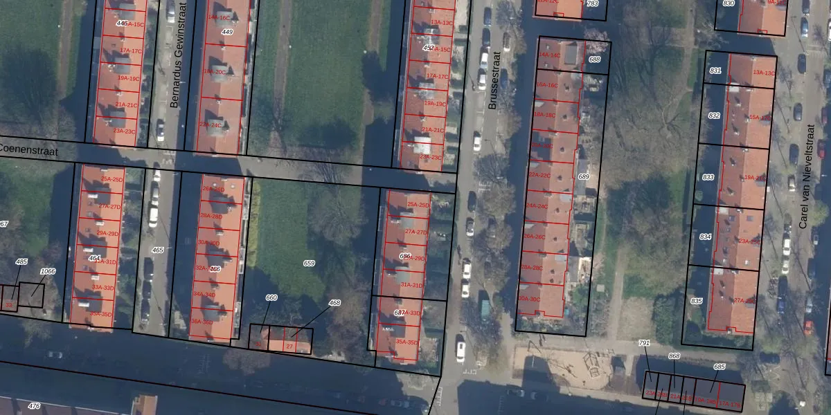 Het perceel waarop Brussestraat 25-A staat heeft een oppervlakte van 473 m². Dit is een groot perceel. De perceeloppervlakte wordt geregistreerd door het Kadaster. Gedetailleerde informatie over de maten van dit perceel kunt u vinden in het rapport Kadastrale kaart met maatvoering van Brussestraat 25-A.