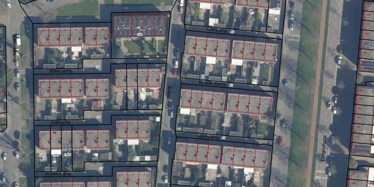 Buddenkamp 8 is gelegen op kadastraal perceel CLS00K43. Deze kadastrale aanduiding is uniek en wordt gebruikt door het Kadaster om eigendomsrechten en andere zakelijke rechten vast te leggen. Het perceel maakt onderdeel uit van de kadastrale gemeente Charlois.