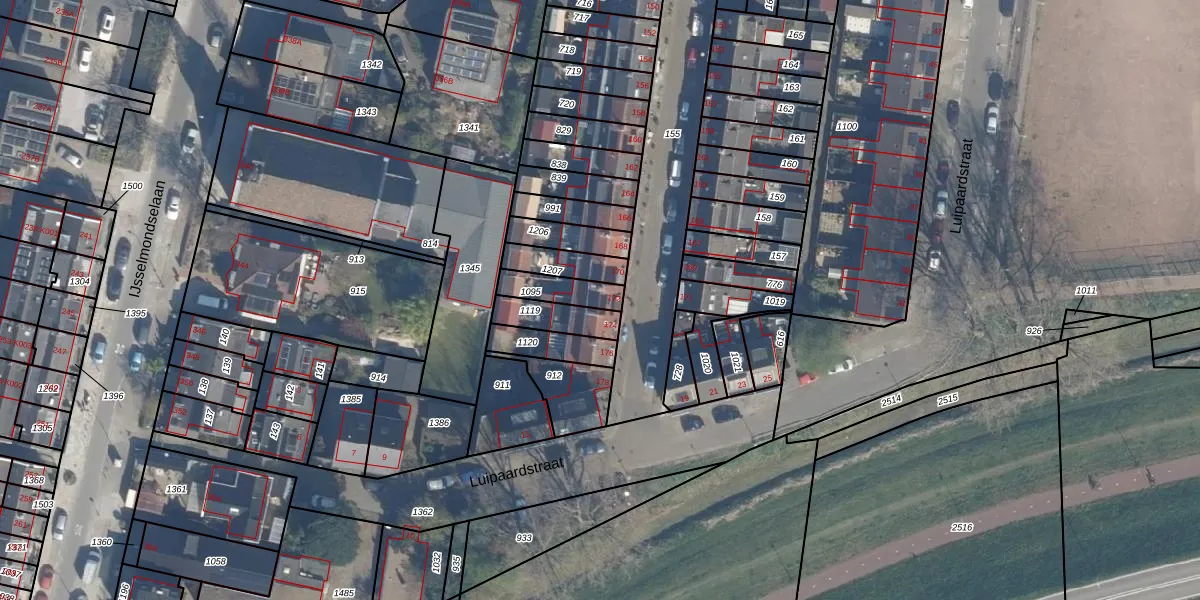 Gebruik de zoekbalk of klik op een perceel voor informatie over de adressen binnen dit perceel.