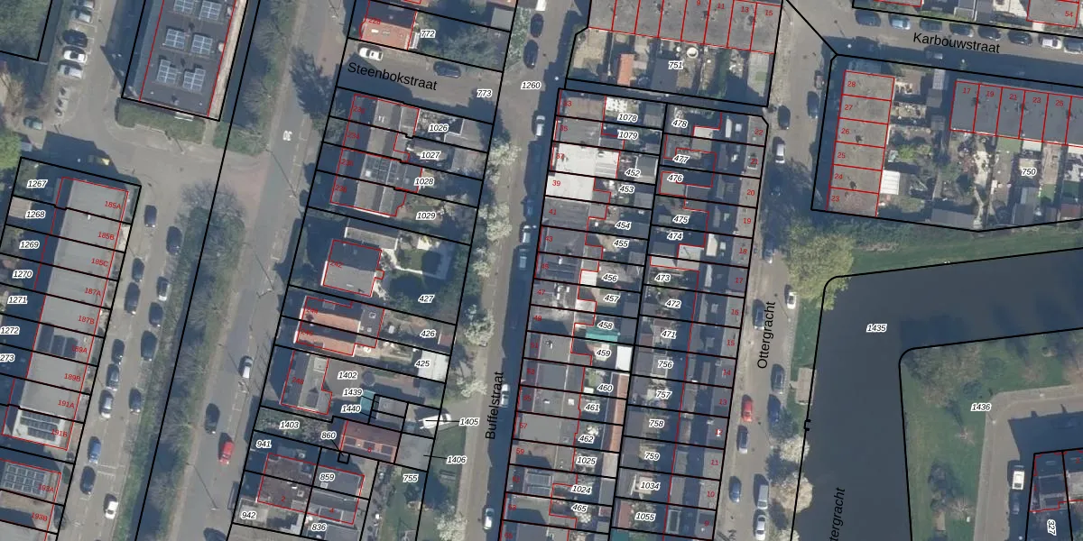Het perceel waarop Buffelstraat 45 staat heeft een oppervlakte van 100 m². Dit is een middelgroot perceel. De perceeloppervlakte wordt geregistreerd door het Kadaster. Gedetailleerde informatie over de maten van dit perceel kunt u vinden in het rapport Kadastrale kaart met maatvoering van Buffelstraat 45.