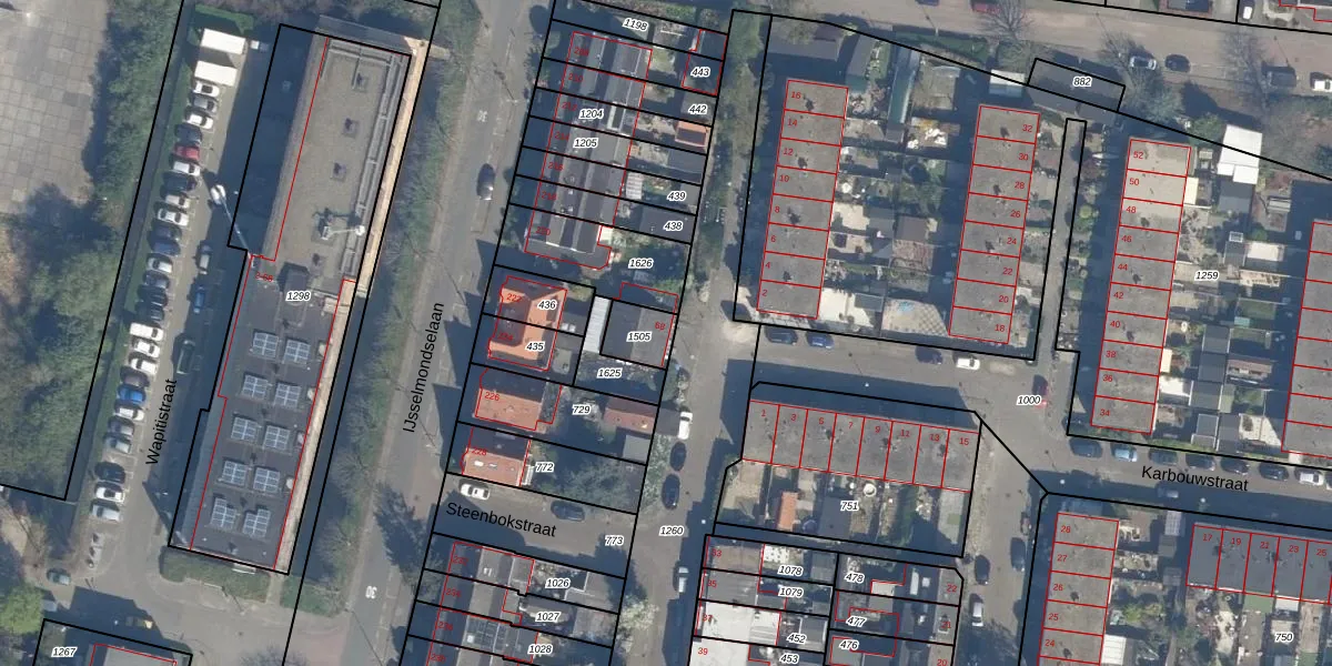 Gebruik de zoekbalk of klik op een perceel voor informatie over de adressen binnen dit perceel.