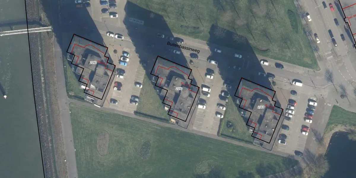 Buitenbassinweg 721 is gelegen op kadastraal perceel KLG00E2150. Deze kadastrale aanduiding is uniek en wordt gebruikt door het Kadaster om eigendomsrechten en andere zakelijke rechten vast te leggen. Het perceel maakt onderdeel uit van de kadastrale gemeente Kralingen.