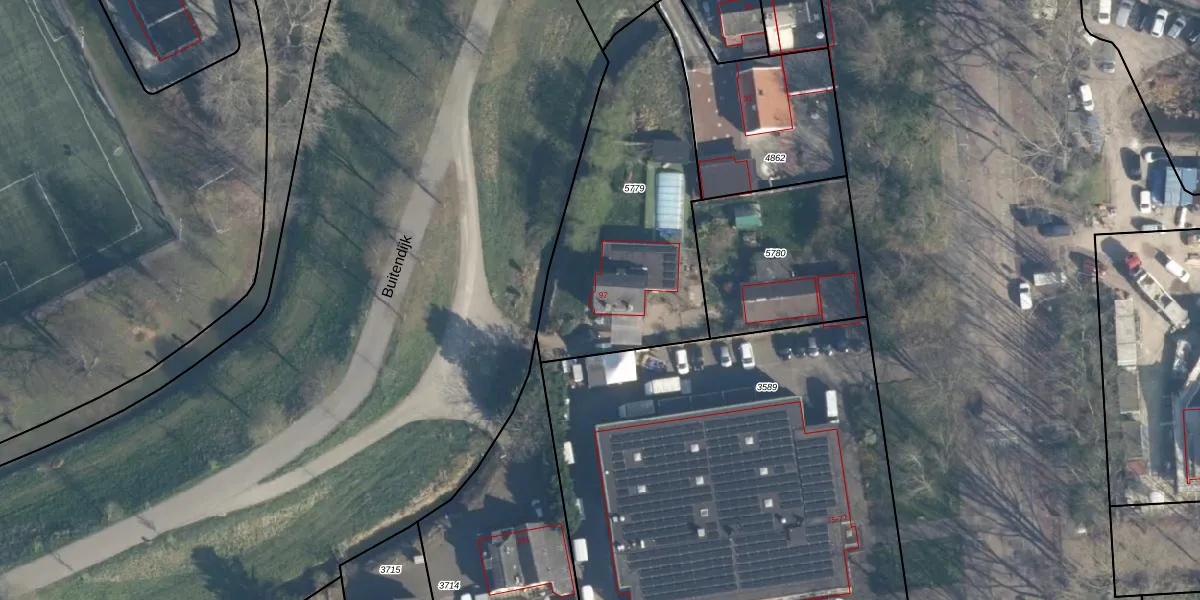 Het perceel waarop Buitendijk 97 staat heeft een oppervlakte van 1185 m². Dit is een zeer groot perceel. De perceeloppervlakte wordt geregistreerd door het Kadaster. Gedetailleerde informatie over de maten van dit perceel kunt u vinden in het rapport Kadastrale kaart met maatvoering van Buitendijk 97.