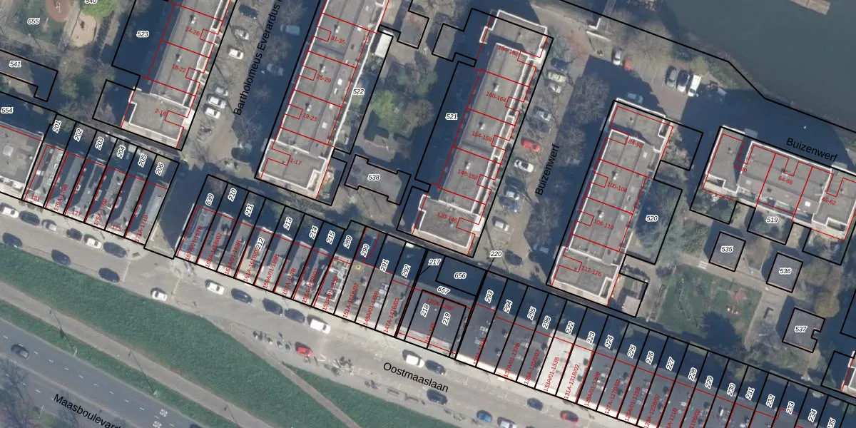 Het perceel waarop het adres ligt is KLG00-I-521. De afkorting 'KLG00' staat voor kadastrale gemeente Kralingen. De gemiddelde perceelgrootte in Kralingen is 1363,34 m². Dit perceel is kleiner: de perceeloppervlakte bedraagt 1078 m². Het grootste perceel in de kadastrale gemeente is 1,32 km². Het kleinste perceel heeft een oppervlakte van 0 m². Er zijn 27 adressen aanwezig op het perceel. In de Basisregistratie Kadaster (BRK) werden de grenzen van het perceel geregistreerd op 24-03-2005.
