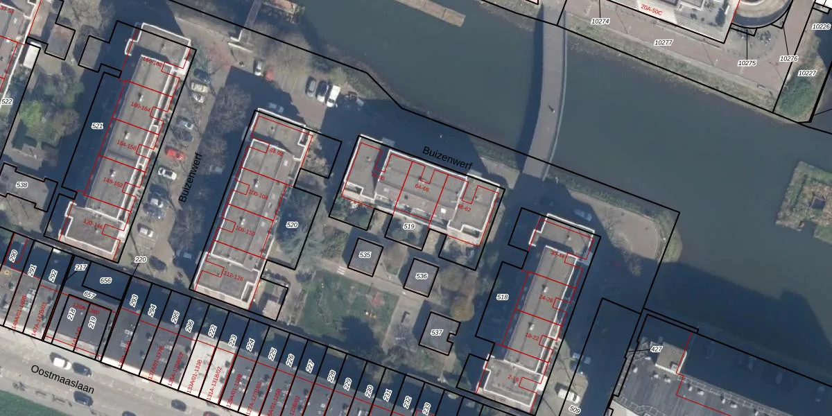 Buizenwerf 66 is gelegen op kadastraal perceel KLG00I519. Deze kadastrale aanduiding is uniek en wordt gebruikt door het Kadaster om eigendomsrechten en andere zakelijke rechten vast te leggen. Het perceel maakt onderdeel uit van de kadastrale gemeente Kralingen.