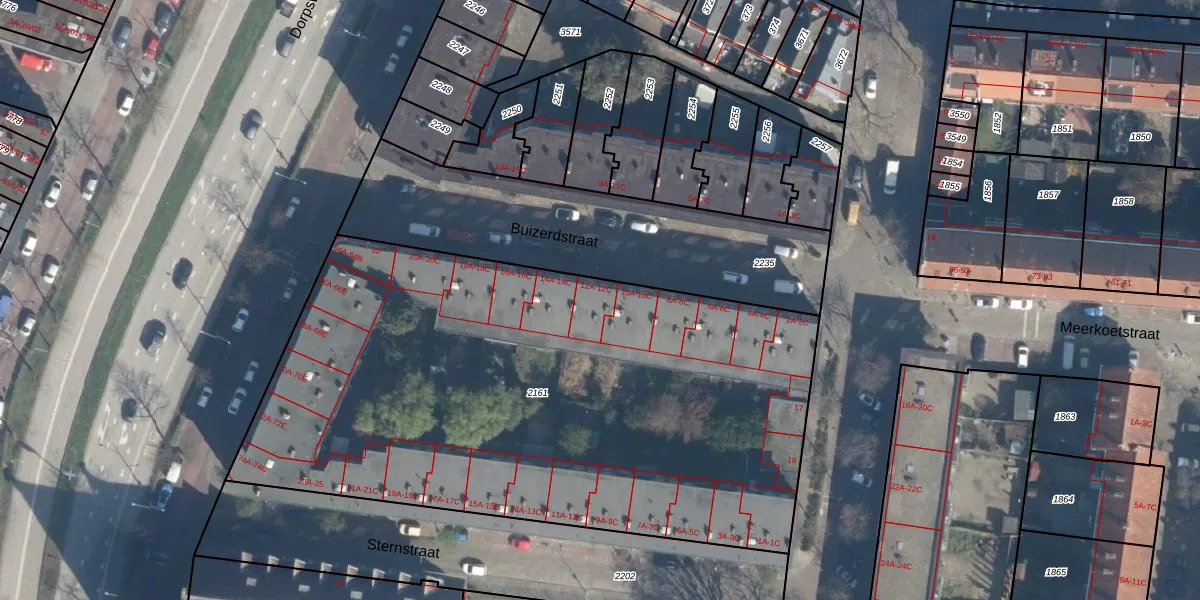 Buizerdstraat 12-A is gelegen op kadastraal perceel CLS00H2161. Deze kadastrale aanduiding is uniek en wordt gebruikt door het Kadaster om eigendomsrechten en andere zakelijke rechten vast te leggen. Het perceel maakt onderdeel uit van de kadastrale gemeente Charlois.