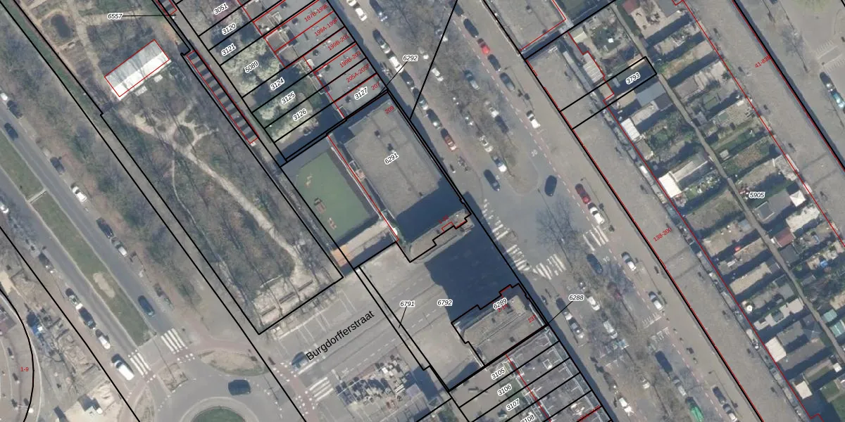 Het perceel waarop Burgdorfferstraat 21 staat heeft een oppervlakte van 1025 m². Dit is een zeer groot perceel. De perceeloppervlakte wordt geregistreerd door het Kadaster. Gedetailleerde informatie over de maten van dit perceel kunt u vinden in het rapport Kadastrale kaart met maatvoering van Burgdorfferstraat 21.