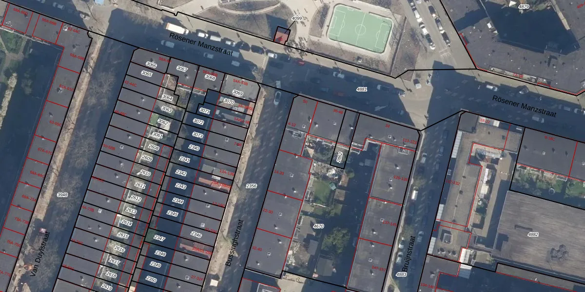Het perceel waarop Bussinghstraat 12 staat heeft een oppervlakte van 2655 m². Dit is een zeer groot perceel. De perceeloppervlakte wordt geregistreerd door het Kadaster. Gedetailleerde informatie over de maten van dit perceel kunt u vinden in het rapport Kadastrale kaart met maatvoering van Bussinghstraat 12.