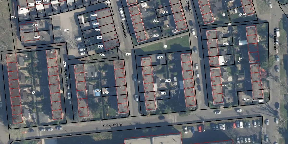 Buurkamp 20 is gelegen op kadastraal perceel CLS00K2156. Deze kadastrale aanduiding is uniek en wordt gebruikt door het Kadaster om eigendomsrechten en andere zakelijke rechten vast te leggen. Het perceel maakt onderdeel uit van de kadastrale gemeente Charlois.