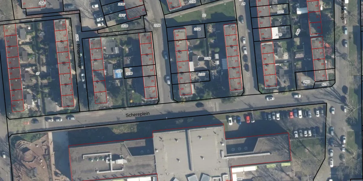 Het adres is gelegen op perceel 2156 in de sectie K en de kadastrale gemeente Charlois. De kadastrale aanduiding is aldus CLS00-K-2156. De gemiddelde perceeloppervlakte in de kadastrale gemeente Charlois is 1146,98 m². Dit perceel is met zijn 1333 m² dus groter dan gemiddeld. De grootste perceeloppervlakte in de kadastrale gemeente is 1,09 km². De kleinste oppervlakte bedraagt 0 m². Op het perceel liggen in totaal 10 adressen. De huidige grenzen van het perceel zijn digitaal in de Basisregistratie Kadaster (BRK) geregistreerd op 06-06-2013.