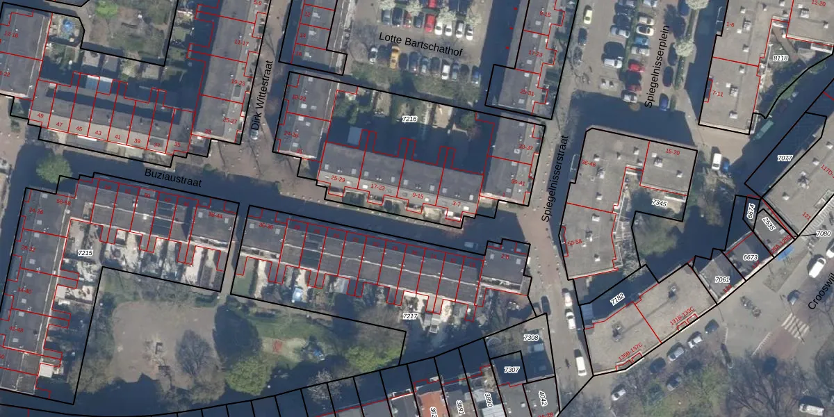 Het adres is gelegen op perceel 7216 in de sectie R en de kadastrale gemeente Rotterdam. De kadastrale aanduiding is aldus RTD07-R-7216. De gemiddelde perceeloppervlakte in de kadastrale gemeente Rotterdam is 506,86 m². Dit perceel is met zijn 1610 m² dus groter dan gemiddeld. De grootste perceeloppervlakte in de kadastrale gemeente is 10,8 ha. De kleinste oppervlakte bedraagt 0 m². Op het perceel zijn 26 adressen aanwezig. De huidige grenzen van het perceel zijn digitaal in de Basisregistratie Kadaster (BRK) geregistreerd op 28-06-2004.