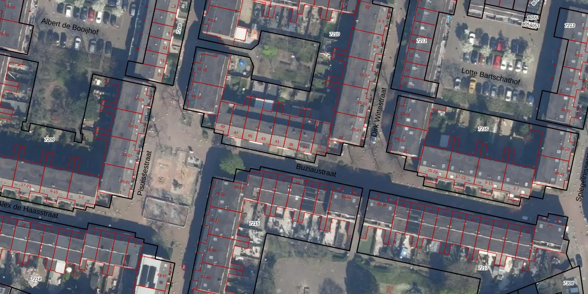 Buziaustraat 39 is gelegen op kadastraal perceel RTD07R7210. Deze kadastrale aanduiding is uniek en wordt gebruikt door het Kadaster om eigendomsrechten en andere zakelijke rechten vast te leggen. Het perceel maakt onderdeel uit van de kadastrale gemeente Rotterdam.