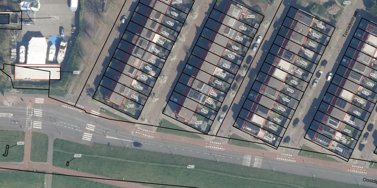 Het adres is gelegen op perceel 4643 in de sectie D en de kadastrale gemeente IJsselmonde. De kadastrale aanduiding is aldus ISM01-D-4643. Het perceel is kleiner dan gemiddeld in IJsselmonde. Het perceel is 141 m² groot, terwijl het gemiddelde ligt op 872,38 m². Het grootste perceel in de kadastrale gemeente is 46,2 ha. Het kleinste perceel heeft een oppervlakte van 0 m². Er zijn geen andere adressen aanwezig op het perceel. In de Basisregistratie Kadaster (BRK) werden de grenzen van het perceel geregistreerd op 29-07-2003.
