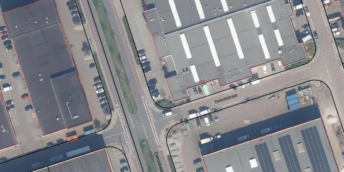 Het perceel waarop Cairostraat 74 staat heeft een oppervlakte van 9415 m². Dit is een zeer groot perceel. De perceeloppervlakte wordt geregistreerd door het Kadaster. Gedetailleerde informatie over de maten van dit perceel kunt u vinden in het rapport Kadastrale kaart met maatvoering van Cairostraat 74.