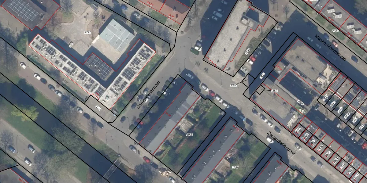 Het perceel waarop Campanulastraat 32 staat heeft een oppervlakte van 1445 m². Dit is een zeer groot perceel. De perceeloppervlakte wordt geregistreerd door het Kadaster. Gedetailleerde informatie over de maten van dit perceel kunt u vinden in het rapport Kadastrale kaart met maatvoering van Campanulastraat 32.