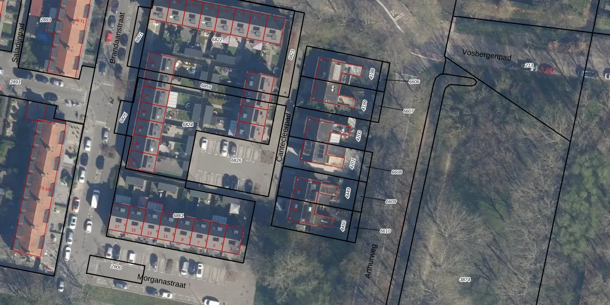 Gebruik de zoekbalk of klik op een perceel voor informatie over de adressen binnen dit perceel.