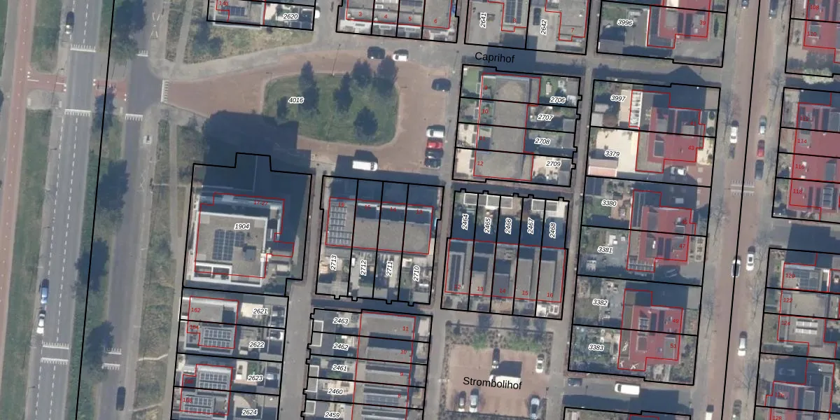 Gebruik de zoekbalk of klik op een perceel voor informatie over de adressen binnen dit perceel.