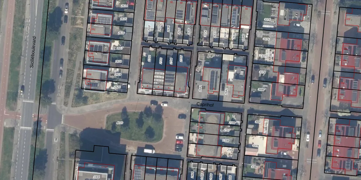 Gebruik de zoekbalk of klik op een perceel voor informatie over de adressen binnen dit perceel.