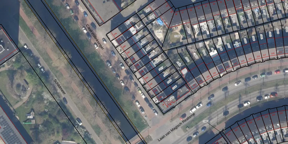 Gebruik de zoekbalk of klik op een perceel voor informatie over de adressen binnen dit perceel.