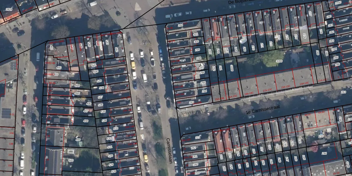 Carnisselaan 16-B is gelegen op kadastraal perceel CLS00H295. Deze kadastrale aanduiding is uniek en wordt gebruikt door het Kadaster om eigendomsrechten en andere zakelijke rechten vast te leggen. Het perceel maakt onderdeel uit van de kadastrale gemeente Charlois.