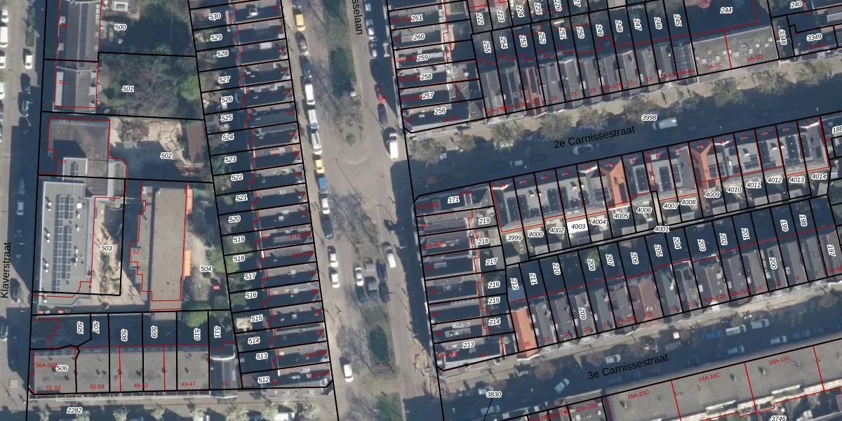 Carnisselaan 36-B is gelegen op kadastraal perceel CLS00H171. Deze kadastrale aanduiding is uniek en wordt gebruikt door het Kadaster om eigendomsrechten en andere zakelijke rechten vast te leggen. Het perceel maakt onderdeel uit van de kadastrale gemeente Charlois.
