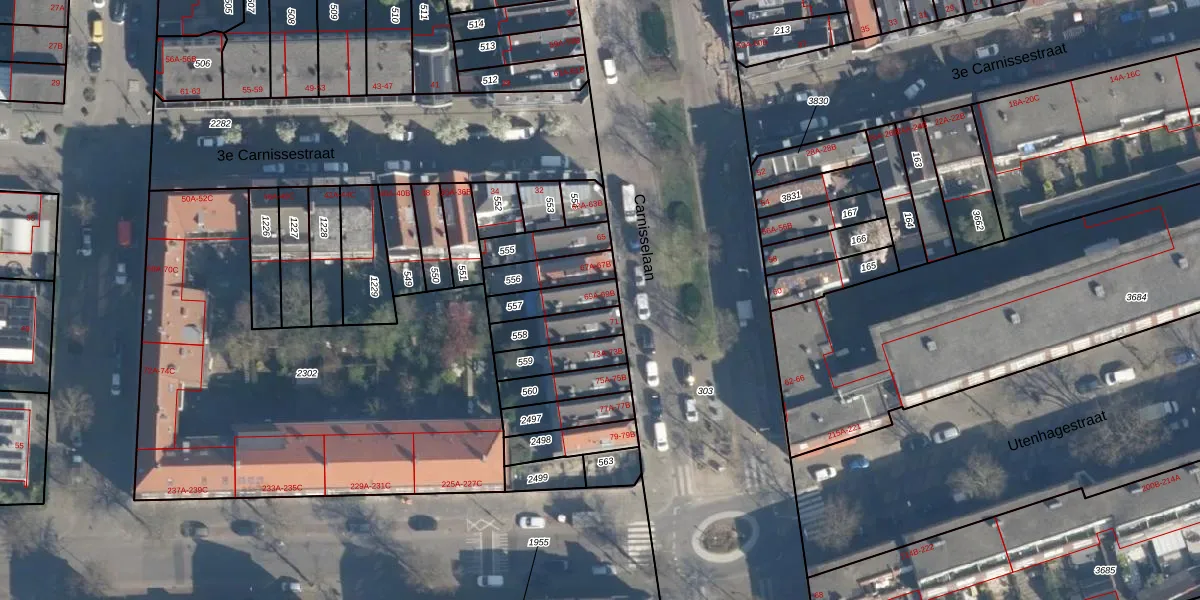 Carnisselaan 69-A is gelegen op kadastraal perceel CLS00H557. Deze kadastrale aanduiding is uniek en wordt gebruikt door het Kadaster om eigendomsrechten en andere zakelijke rechten vast te leggen. Het perceel maakt onderdeel uit van de kadastrale gemeente Charlois.