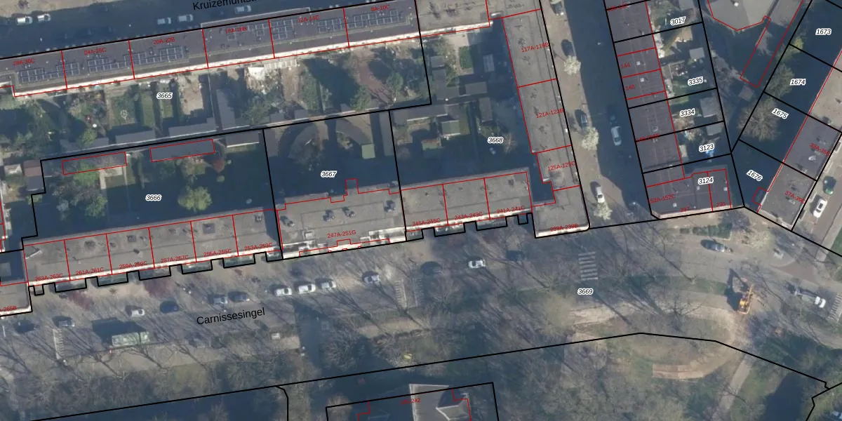 Carnissesingel 245-B is gelegen op kadastraal perceel CLS00H3668. Deze kadastrale aanduiding is uniek en wordt gebruikt door het Kadaster om eigendomsrechten en andere zakelijke rechten vast te leggen. Het perceel maakt onderdeel uit van de kadastrale gemeente Charlois.