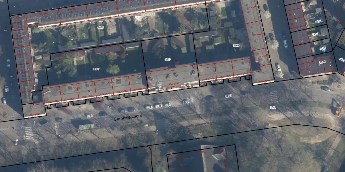 Carnissesingel 251-D is gelegen op kadastraal perceel CLS00H3667. Deze kadastrale aanduiding is uniek en wordt gebruikt door het Kadaster om eigendomsrechten en andere zakelijke rechten vast te leggen. Het perceel maakt onderdeel uit van de kadastrale gemeente Charlois.
