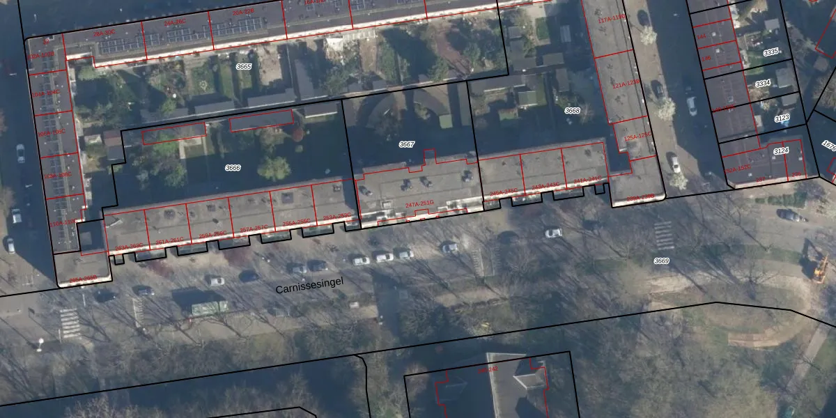 Carnissesingel 251-G is gelegen op kadastraal perceel CLS00H3667. Deze kadastrale aanduiding is uniek en wordt gebruikt door het Kadaster om eigendomsrechten en andere zakelijke rechten vast te leggen. Het perceel maakt onderdeel uit van de kadastrale gemeente Charlois.