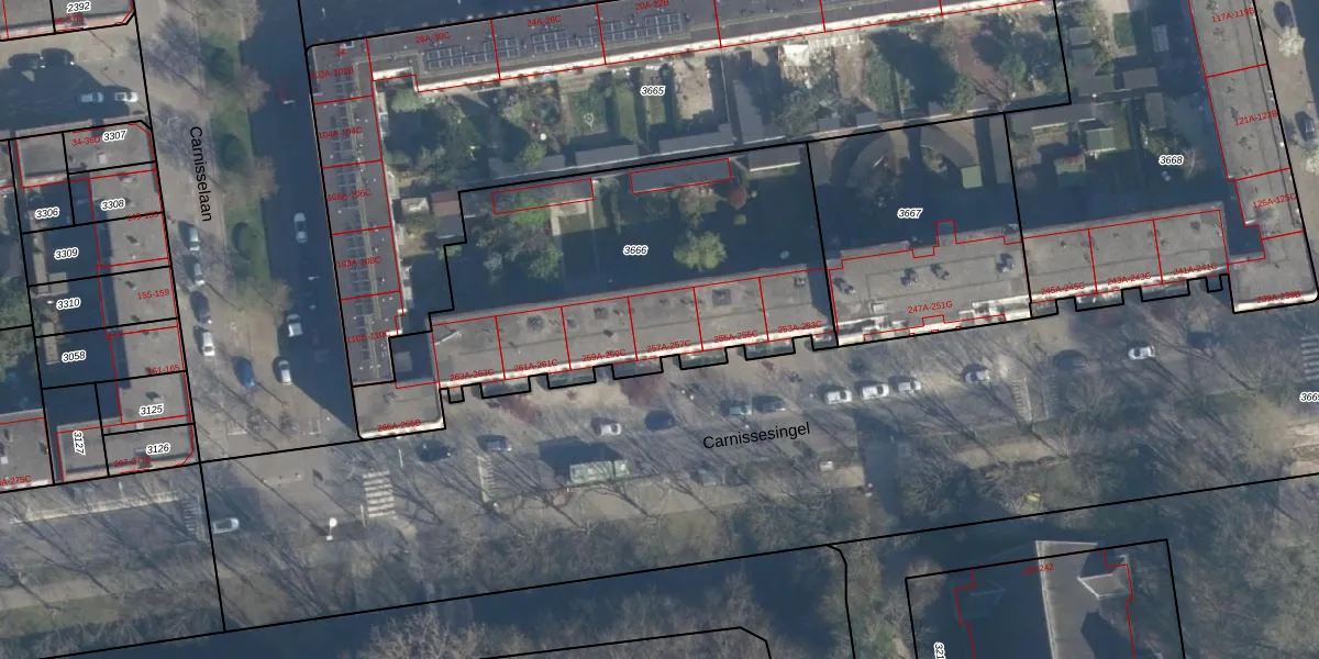 Carnissesingel 257-B is gelegen op kadastraal perceel CLS00H3666. Deze kadastrale aanduiding is uniek en wordt gebruikt door het Kadaster om eigendomsrechten en andere zakelijke rechten vast te leggen. Het perceel maakt onderdeel uit van de kadastrale gemeente Charlois.