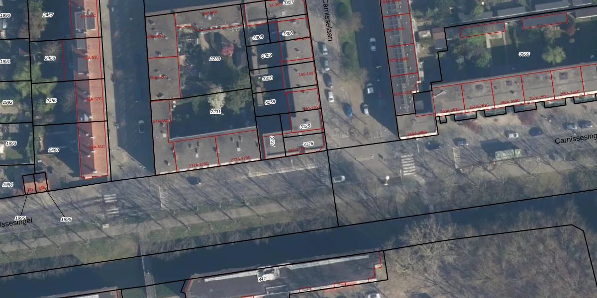 Carnissesingel 269-A is gelegen op kadastraal perceel CLS00H3126. Deze kadastrale aanduiding is uniek en wordt gebruikt door het Kadaster om eigendomsrechten en andere zakelijke rechten vast te leggen. Het perceel maakt onderdeel uit van de kadastrale gemeente Charlois.