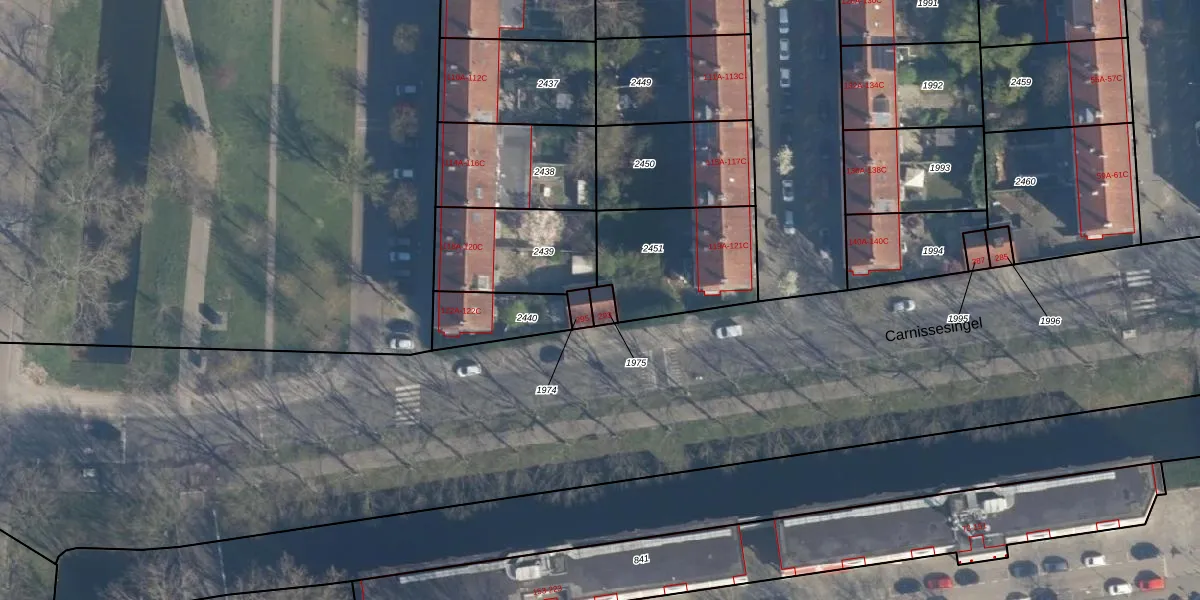 Carnissesingel 293 is gelegen op kadastraal perceel CLS00H1975. Deze kadastrale aanduiding is uniek en wordt gebruikt door het Kadaster om eigendomsrechten en andere zakelijke rechten vast te leggen. Het perceel maakt onderdeel uit van de kadastrale gemeente Charlois.