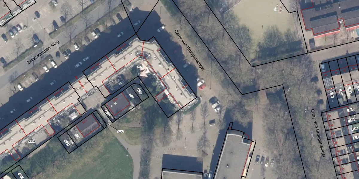 Carry van Bruggensingel 29 is gelegen op kadastraal perceel RTD13BA1579. Deze kadastrale aanduiding is uniek en wordt gebruikt door het Kadaster om eigendomsrechten en andere zakelijke rechten vast te leggen. Het perceel maakt onderdeel uit van de kadastrale gemeente Rotterdam.
