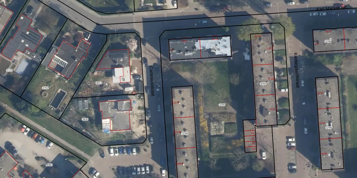 Het perceel waarop Cartesiusstraat 12 staat heeft een oppervlakte van 613 m². Dit is een groot perceel. De perceeloppervlakte wordt geregistreerd door het Kadaster. Gedetailleerde informatie over de maten van dit perceel kunt u vinden in het rapport Kadastrale kaart met maatvoering van Cartesiusstraat 12.