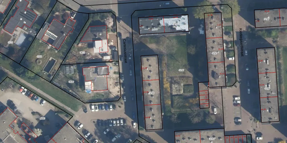 Het perceel waarop Cartesiusstraat 24 staat heeft een oppervlakte van 613 m². Dit is een groot perceel. De perceeloppervlakte wordt geregistreerd door het Kadaster. Gedetailleerde informatie over de maten van dit perceel kunt u vinden in het rapport Kadastrale kaart met maatvoering van Cartesiusstraat 24.